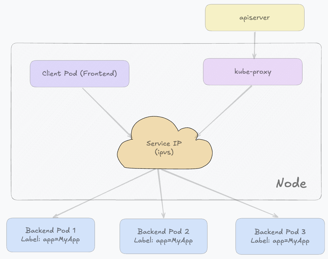ipvs的本质是一个基于哈希表的数据结构,它在内核空间维护Service与后端Pod的映射关系。当请求到达节点并匹配到Service VIP时,ipvs可以通过O(1)级别的查找快速选出一个后端Pod,然后直接将流量转发过去。这种方式相比iptables逐条规则匹配(线性查找)在大规模集群中具有更好的性能和更低的延迟,同时也支持多种负载均衡算法,例如轮询、加权轮询以及最少连接等。