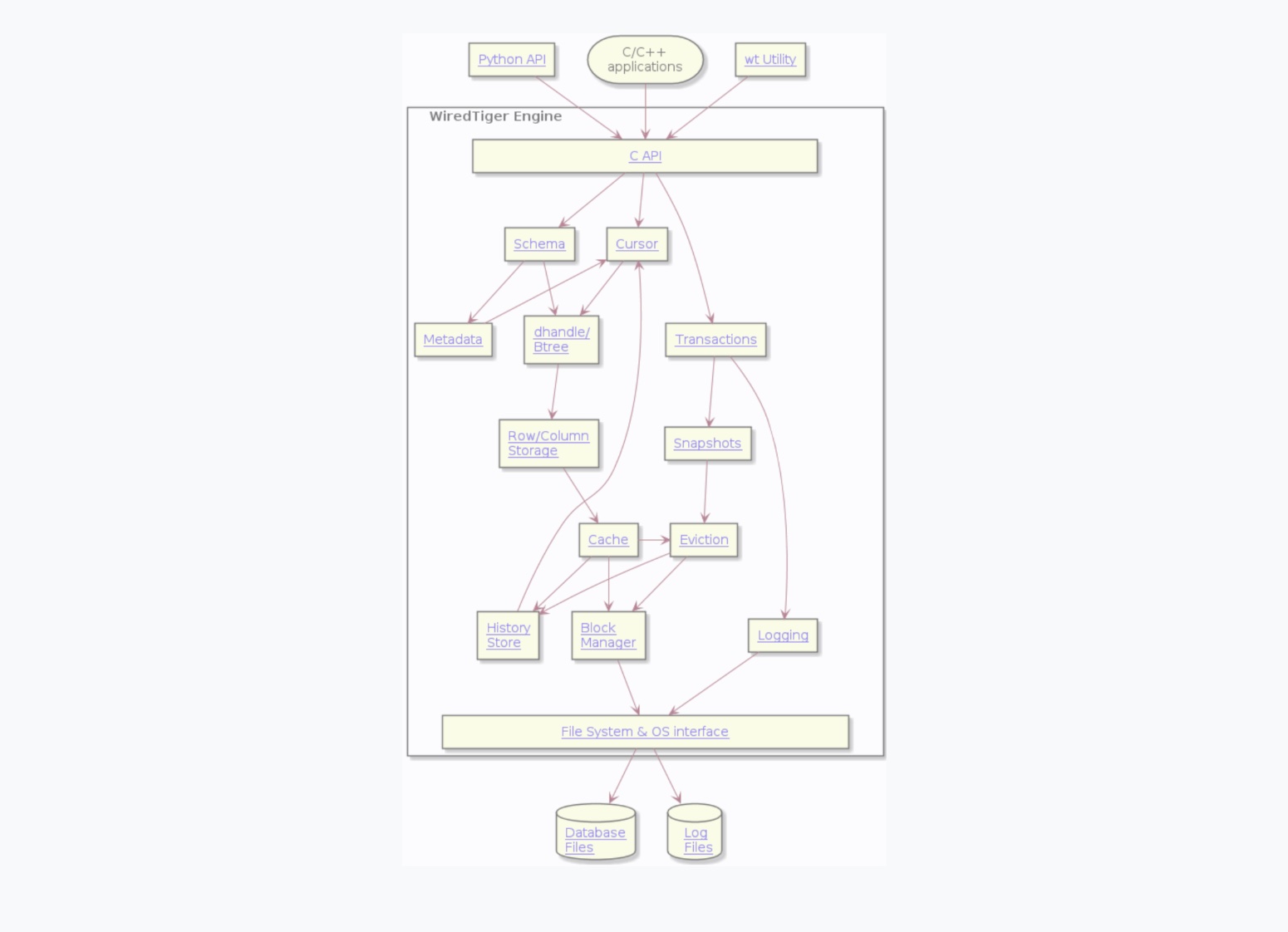 WiredTiger引擎的整体架构如下: