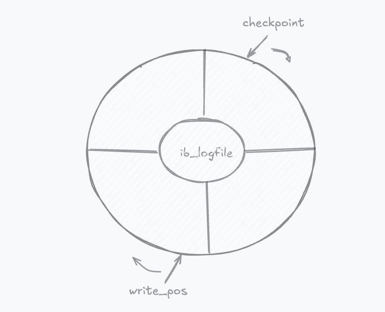 redolog是一个固定大小的循环日志,它在写满之后会从头开始覆盖。它的运行依赖两个关键指针: